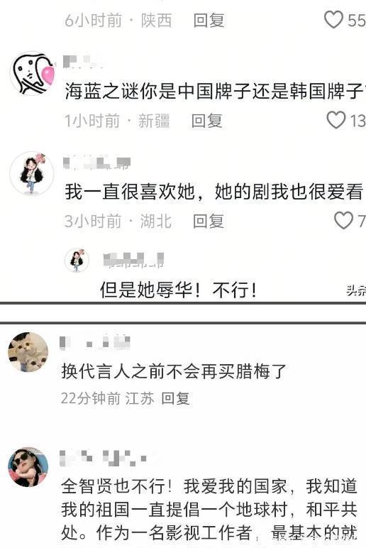 这些品牌虽不是中国的,却把中国当“摇钱树”,海蓝之谜的中国销售额占全球30%,伯爵的珠宝在中国卖得比韩国多两倍。可当剧里的内容发酵,网友们的滤镜瞬间碎了:有人跑到伯爵评论区,晒出全智贤的台词截图,喊着“赶紧解约,别沾辱华咖”;有人在海蓝之谜评论区,拿之前某国内明星出事时品牌“半天解约”的速度催着“别磨叽”;还有人直接用韩语骂她“吃中国的饭,砸中国的碗”,字里行间都是火。